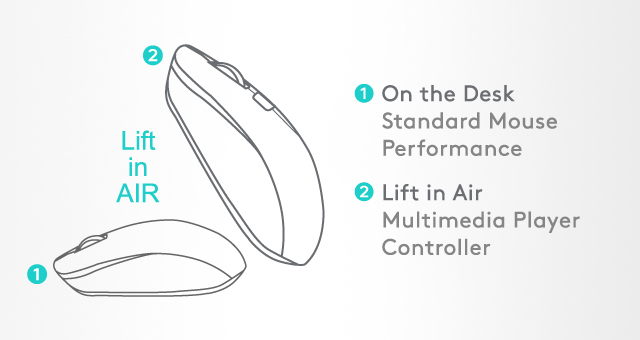 Инновационная функция Air Mouse обеспечивает два режима использования [Desk+Air]. Превратите мышь в мультимедийный контроллер, просто подняв ее в воздух. Установка ПО не требуется.